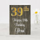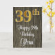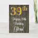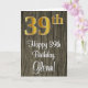 Denna lyxiga, sofistikerade och elegant-matematiska hälsningskortsdesign har ett stort ordnummer "39:e" som har ett faux/imitation guld-liknande utseende, tillsammans med hälsning-födelsedagsmeddelandet "Lycklig 39:e födelsedag" och en personlig namn i ett skript-stil-teckensnitt på framsidan. Den har också en fingerad träinspirerad bakgrund mönster på framsidan. Insidan har ett anpassat hälsning-födelsedagsmeddelande, eller så kan det kanske rensas och lämnas tomt om ett meddelande ska skrivas för hand i stället. Ett sådant anpassat födelsedagskalenderkort kan användas för att fira någons trettionionde födelsedag. [~Z0000519]