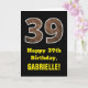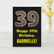 Den här roliga, roligt-födelsedag som kallas hälsningskort har ett stort nummer "39" med en fejkad träkorna som inspirerade till framsidan mönster. På framsidan finns också hälsning:s födelsedagsmeddelande "Lycklig 39:e födelsedag" och en personlig mottagare av namn. Insidan innehåller ett hälsning-meddelande från anpassadets födelsedag, eller kan kanske tas bort och lämnas tomt om ett meddelande ska skrivas för hand i stället. Ett sådant här födelsedagskort i personligen kan vara ett roligt sätt att skicka önskemål till någon som firar sin trettionionde födelsedag. [~Z0000433]