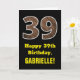 39:e födelsedagen: Namn, Faux Wood Grain Mönster " Kort
