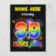 Framsidan av detta livliga och spännande vykort från födelsedagsfest inbjudan har en personlig namn, ett livfullt brinnande berömmande fyrverkerier inspirerade mönster, och meddelandet "39 ÅRS OLD!" med ett färgstarkt regnbågsspektrum inspirerat till gradient mönster. Baksidan innehåller ett personlig som kan innehålla information om födelsedagsfesten, till exempel när den sker och var den hålls. Bjuda in vykort som detta kan skickas till potentiella deltagare i ett party som hålls för att fira födelsedagen för någon som blir 39 år gammal. [~Z0000452]