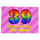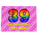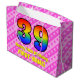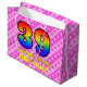 Den här roligten och den 39:e födelsedagskalematerade presentsäcksdesignen har ett stort nummer "39" med ett regnbågsspektrum som inspirerar till gradient mönster. Det innehåller också budskapet "Lycklig 39:e födelsedag", följt av anpassadet namn. Bakgrunden är en glad mönster av mörkens rosa och ljust rosa rand som innehåller levande hjärtformer av rosa. Sådana presentsäckar kan användas när presenter eller presenter förpackas för att hedra någons trettionionde födelsedag. [~Z0000414]