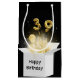 Ballonger guld party, rosett band och mousserande ljusstrålar i en vit låda på svart i 39 år. Den svarta bakgrunden färg kan ändras.