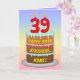 39th Birthday — Fun Cake & Candles, w/ Custom Name Kort