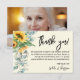 Vattenfärg solros eukalyptus grönska tack begravning kort. Lägg till ditt favoritfoto och datum.