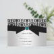Övertoningsbakgrund i silver med svart dämpare, adorterad med svart band med turkosjewel. Anpassa med egen information. Om du behöver hjälp kan du skicka e-post till shutterbug600@yahoo.com. Det finns en matchande bröllopsinbjudan:
