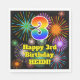 Den här glada och glädjefyllda födelsedagstematiserade designen för pappersservetter har en stor siffra "3" med ett färggrant regnbågsspektrum-gradient-inspirerat mönster. Den har också texten "Grattis på 3-årsdagen" och ett redigerbart namn. Bakgrunden har ett färggrant mönster inspirerat av det utseende som sprängande festliga fyrverkerier har. Pappersservetter som denna kan användas på en födelsedagsfest som hålls för att fira någons tredje födelsedag.