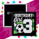 Den här födelsedagsfesten är perfekt för en 3-årig flickas födelsedagsfest för fotboll att fira sin 3-årsdag! Underbar för barn att kärlek ska spela fotboll, titta på fotbollsspelare eller framtida fotbollsstjärnspelare! Har en fotboll på en fotbolls-fält-grafik med nummer 3 för en flickas 3-årsdag.