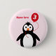 3-årsdagars penguin lägg till namn rosa knapp