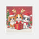 Bilden är en digital illustration med tre kattungar klädda i julstämning, placerade nära en röd presentlåda. Varje kattunge bär en röd hatt. Kattungen i mitten är också försedd med renar. Bilden visar en varm och glatt atmosfär som passar julhelgen. Den festliga stämningen understryks ytterligare av en närvarande Julgran i bakgrunden.