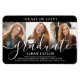Dela glädjen av en gymnasie- eller högskoleexamen med personliga svarta och vita flexibla magnetiska 3-foto-kollage-inbjudningar. Bilderna och texten i denna mall är enkla att anpassa, och färgerna är lätta att ändra med Zazzle:s designverktyg. Inkludera alla detaljer du önskar, såsom information om festinbjudan, speciella utmärkelser, examensinriktning, favoritcitat, kontaktinformation för den nyutexaminerade eller framtidsplaner. Det magnetiska baksidan gör det enkelt för familj och vänner att visa upp dem. Den moderna designen har en examenshatt, elegant kalligrafi, traditionell typografi och tre bilder som du väljer, till exempel slutbild eller bilder från examensceremonin. Dessa snygga examensmagneter är ett unikt och stilrent sätt att tillkännage en speci