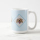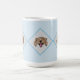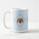 Njut av din valfria dryck i den här mugg-sporten, tre leende, leende ansikte som vilar på en blå diamantbakgrund.