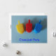 (utvalda produkter från många)en söt väska med 3 draperier på blå bakgrund och ord Lycklig chanukah skrivet ut i skript.
