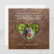 Tredje bröllopsdag foto sytt läder bruna hjärtliga inbjudningar. Vacker lädereffekt med en söt hjärtformad ram som kan anpassas med ert eget parfoto och era egna detaljer för 3:e bröllopsdagsfirande. Tre års äktenskap är en årsdag som förknippas med läder och hjärtat symboliserar kärlek. Konst och design av www.mylittleeden.com och www.mylittleedenweddings.com