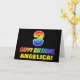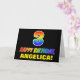 Framsidan av denna färgstarka, glada och roligt födelsedag med hälsningskortet har ett stort nummer "3" och meddelandet "GRATTIS PÅ FÖDELSEDAGEN", båda färgader med en regnbågsspektrumövertoning inspirerade mönster, tillsammans med en fet gult anpassningsbar mottagare namn. På framsidan finns också en svart bakgrund med oformaterad färgad. Insidan innehåller ett hälsning-meddelande från anpassningsbarnas födelsedag, eller kan kanske tas bort och lämnas tomt om ett meddelande ska skrivas för hand i stället. Ett sådant här muntert födelsedagskort i anpassadet kan vara ett roligt för att erkänna någons tredje födelsedag. [~Z0000472]