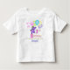 En skjorta för 3:e födelsedag party-flickan med eget namn med en kuddig och söt lila-nalle prinsessa klädd i en underbar gult smyckad krona och rosa, blå och grönt-blomma med ballonger med ord PARTY på dem. Att anpassa sig till barnets namn gör extra speciellt. Ursprunglig design av Anura Design Studio.