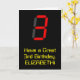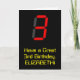 På framsidan av det här fåniget och på roligtens födelsedag finns det ett stort nummer "3" med ett rött utseende av den digitala visningen stil, tillsammans med meddelandet "Ha en Underbar tredje födelsedag" och ett redigerbart namn med svart färgad som bakgrund. Insidan innehåller ett hälsning-meddelande från anpassadets födelsedag, eller kan kanske tas bort och lämnas tomt om ett meddelande ska skrivas för hand i stället. Ett sådant här födelsedagskort i anpassadet kan vara ett roligt för att erkänna någons tredje födelsedag. [~Z0000386]