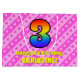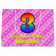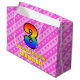 Den här lycklig och den festliga 3:e födelsedagskalematerade presentsäcksdesignen har ett stort nummer "3" med ett mönster inspirerat av ett regnbågsspektrum. Det innehåller också budskapet "Lycklig 3:e födelsedag", följt av anpassadet namn. Bakgrunden är en roligt mönster av ljus rosa och mörk rosa rand som innehåller levande hjärtan i rosa. En presentpåse som denna kan användas när man slår in presenter eller ger gåvor till någon som firar sin tredje födelsedag. [~Z0000414]