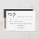 Elegant 3-menyalternativ för menyval elegant OSA bröllop svar. Anpassningsbar OSA kort för elegant med en perfekt för menyval för ett modernt och elegant bröllop. Utformningen är i mörk grått och beige färg. Texten finns i ett modernt skript. Svarskortet i bröllop frågar dina gäster vilken måltid de vill ha på mottagningen och antalet menyer. Ändra informationen på kortet så att det passar ditt behov.