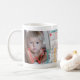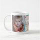 Helt anpassade det nyfödda trendiget i den moderna familjen nyfödd bebis keepsaké-mugg med ditt 3 fotokollage, WELCOME färgful typography-skript overlay, baby namn och födelsestatus.