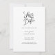 Detta moderna eleganta script-foto spara-datumkort har dina 3 speciella foton överlagrade med ett manus som sparar datumet, och dina namn och speciella datum i modern typografi. Baksidan har ytterligare detaljer om sparande av datumet, inklusive din webbplatsadress för bröllopet. Designad av Thisisnotme