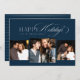 Glad helg! Ett blått 3-foto-julkort för att skicka glatta önskemål till din familj och dina vänner. Den här eleganten har roligt typografi som parar ett modernt skript med en enkel sif.