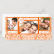 3 av dina foton Spara datum Whimsical Coral Orange Love Bird Mönster Monogram Elegant men Funky Orange Love birds bröllopsinbjudan ser matchande OSA och tackkort