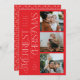 God jul! Skicka helgdag önskemål till din familj och dina vänner med det här 3 fotosamlingskortet. Den här snygga röda designen har en roligt och modern typografi. Baksidan är en enkel mönster i en matchande glatt röd färg.