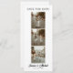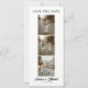 Att införa ett modernt, minimalistiskt meddelande om bröllop spara-till-datum i en fotopotek stil. Den här designen har plats för tre av dina favoritfoton, tillsammans med en QR-kod och webbplatsen bröllop på baksidan. Om du vill anpassa designen klickar du bara på knappen Redigera/anpassa. Den här sparan-det-aktuella fotoremsan bokmärken är ett perfekt sätt att meddela din speciella dag till vänner och familj.