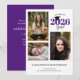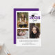 Denna rena och moderna inbjudan till studenten erbjuder en 3-fotokollage på vit bakgrund. Utformningen är accentuerad med lila och innehåller anpassningsbar på framsidan och baksidan.