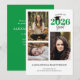 Denna rena och moderna inbjudan till studenten erbjuder en 3-fotokollage på vit bakgrund. Utformningen är accentuerad med grönt och innehåller anpassningsbar framtill och bakåt.