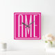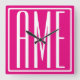 3 Initialer Monogram | Vit på Shock rosa Fyrkantig Klocka