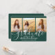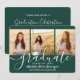 Dela glädjen av en gymnasie- eller högskoleexamen och bjud in familj och vänner att fira med dessa anpassade 3-foto-kollage i grönt och vitt. Alla bilder och texter är enkla att anpassa. (TIPS FÖR BILDPLACERING: Ett enkelt sätt att centrera en bild exakt som du vill är att beskära den innan du laddar upp den till Zazzles webbplats.) Denna mall är formaterad för en examensfest, men kan enkelt anpassas som en inbjudan till öppen hus eller ett annonskort. Ändra bara texten för att inkludera alla detaljer du vill ha, till exempel föräldrar namn, speciella utmärkelser, examina, favoritcitat, examenens framtidsplaner eller ny adress. Om det finns någon text som inte önskas kan den helt enkelt raderas. Designen har en mörkgrön bakgrund, vit studentmössa, handskriven stilkalligrafi, modern minimalistisk typografi och tre bilder som du väljer, till exempel seniorbilder eller bilder från examensceremonin. Detta eleganta examensinbjudningskort är ett trendigt och