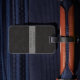 Den moderna sofistikerade woodgrainen och den svart läderlooken reser bagagemärkren med monogrammed initialer. Ojämn bakgrund för look för struktur för fauxsvartläder. Centered är en mahogny som wood korn kvadrerar på en svart diamant med en distingerad monogram för 3 initialer i svart. Stilsortsstil och färger kan ändras. Baksida har samma utskrivavet svart läder att verkställa bakgrund. DIY-textmall som tillfogar namn och telefonnummer eller annan information om kontakt på bak. Notera: Bilder skrivs ut. Inte faktiskt läder eller trä. Stilfull bagagemärkre för honom, huruvida för affär eller nöje. Manlig, personliggåva för ledare, flott bonresagåva, sofistikerad och unik möhippagåva för brudgum bröllopsresa, personligstudentengåva eller pensiongåva.