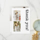 3 Photo bröllop tackar dig för att du har platta kort som ingår i Retro Typewriter Stil-Bröllop-sviten för minimalistisk typografi. Personlig med dina egna tre fotografier och texter så att du kan lägga till dina egna meddelandedetaljer till dessa enkla kort som ger ett intryck - designat med trendigets typografi - Tack till din bröllopsfest, familj och vänner i stil med dessa vackra platta kort från Ricaso. Anpassa dem genom att markera tre meningsfulla foton från din stora dag och lägga till ditt eget hjärtliga meddelande. Eleganten med trendig-typografi ger ett bestående intryck på dina nära och kära. Att uttrycka tacksamhet har aldrig varit så snyggt! De här personligerna är perfekter för nyfödda som vill sin glädje med dem som delade i firande. Överraska dina gäster med ett hjärtligt och unikt "tack" som de kommer att ta hand om för evigt.