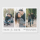 Den här enkla eleganten, den moderna tre foto-bröllop spara datum-magnetmallen, innehåller dina foton och ett "Spara datum"-meddelande i svart, med en slående blandning av två olika typsnitt, med "och" i ett lätt, flytande skript mellan de två andra ord, som ligger i övre fodral med ett djärvt och skarpt utseende. Inslag i designen är en bild som inte kan ändras. Men du kan välja att ändra teckensnittet, storlekt eller färg som används för den andra texten. Du kan välja att ta bort exempelplatsen utan att ersätta den med en egen för ett enklare utseende. Standardtexten färg för namn, datum och plats är en något mjuk svart text. Anpassa den här chicen till dagens bröllop spara datum tre fotosamlingsmall med dina favoritfoton och din inspiration och gör den unik för dig!