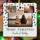 3 Photo Collage Modern Black White jul Ceramic Ornament. Svartvit kvadrat mönster. Lägg till 3 foton och namn. Det är en underbar julkeepé för en familj, vänner eller husdjursägare.