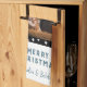 3 Foto Collage Modern Black White Blue- julhandduk. Svart, vit och blå kvadrat mönster. Lägg till 3 foton och namn. Det är ett vackert julkök för en familj, vänner eller husdjursägare.