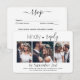 tre av dina förlovning- eller bröllop-foton med denna elegant och mångsidiga OSA kort. Alla bilder och texter är enkla att anpassa. (IMAGE PLACEMENT TIP: Ett enkelt sätt att centrera ett foto exakt som du vill är att flytta det till skörd innan du laddar upp det till Zazzle-webbplatsen.) Kortet omfattar måltider, livsmedelsallergier, sång-begäran och alternativ för att svara online via en webbplats eller e-post adress. All svarsinformation kan anpassas eller tas bort. Den svarta och vita designen har modern minimalistisk typografi, manuell skriptkalligrafi och 3 bilder efter eget val. Detta kort är ett snyggt för att be bröllop gäster att vänligt besvara er kommande speciella dag i firande.