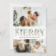 Elegant 3-fotokort med ett rent och modernt utseende med guld och grön helgdag, med en botanisk guld mönster tillbaka.