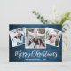 3 PHOTO-jul Rustic Blue Wood Hälsning Julkort