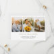 This simply charming multi photo collage wedding save the date flat card template features a simple design with a warm, handmade flair and minimalist borders. The front features your first names, date and wedding locale under your three favorite photos and a unique 'save our date' message in lower case handwriting that we first wrote by hand and then adapted for this card. This 'save our date' script is highlighted in an elegant gold tone called California Gold. The front names, date and location text is a very dark gray that's almost black. You might choose to change the color of some or all of this text to another color. The 'save our date' script design element can't be altered. But please check our store for a version of this card that we offer separately with that script in black if you prefer that look! On the back you can of course in addition to replacing our sample info with your own, delete text fields that you don't need, or change the wording, as well as change font, size and color. You might for example to delete the sample website address without replacing it with your own, or replace it with an entirely different message. The default background color on the front is set as transparent, to let the paper color simply serve as the base tone. On the back we chose an atypical order for the information, putting the 'please save the date' text after the 'for the wedding of' text, which lends a path less traveled charm to it. You can easily alter this order or change anything else to suit your needs. On back, we've picked a tone for the background called White Smoke that's a very light gray, with mostly white in it. You can easily change this by either picking one of the basic colors in the editing tools or entering a color number if you have a specific hue in mind that you found in your research, or by looking at the color spectrum tool and choosing something by sight. The default text tone on back is gray, but you can edit this in favor of another text color, and you can also change any of the font. Use the intuitive editing and design tools, your favorite photos and your inspiration to make this simply chic photo wedding save the date card uniquely yours!