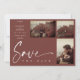 Brown Chic Trendy Collage Wedding Covid19 3 Photos Save the Date.