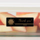 Professionellt utseende, guldtext, svart, vattentät, tack-etikett. Designen har 3 sfärer på framsidan och möjligheten att göra den till din egen. Lägg till din logotyp eller foto. Perfekt för entreprenörer och företag att använda på förpackningar och frakt. Klicka på "anpassa ytterligare"-länken och använd vårt designverktyg för att ändra denna mall. Finns i flera färger.