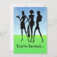 Tre moderiktiga vänner och moderister går ut på stan för en dag av shopping och roligt. Denna bild har en bakgrund av gräs och blå himmel med grönt och tre kvinnliga silhuetter, som håller shopping bag och väskor, redo att gå ut i staden mode. Underbar för en shoppingdag i resa, flickor dag eller natt ut, eller en party hemma. Alla formgivningar Copyright © 2012 www.CuteComfy.com