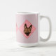 Njut av din valfria dryck i den här mugg-sporten, tre leende Shepherd ansikte vilar på en röd diamantbakgrund.