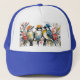 Upptäck stil med vår charmerande truckerkeps med tre vackra fåglar som chattar på gren, som var och en är försedd med ömtålig blomma krona. Den här lekande och visuella designen är perfekt för att ge ditt utseende en aning naturinspirerad glädje. Perfekt för fågeln älskare och alla som har roligt, boho-chic vibe!