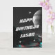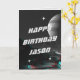 Anpassningsbarnas födelsedagskort för ALLA AGES med sci-fi space 3D-anaglyph-bakgrund! Omfattar "grattis på födelsedagen (namn)" på framsidan i sans serif sci-fi-typografi. Redigera bara namn för det här födelsedagskortet. Tillgänglig vid utskrift och omedelbar nedladdning.