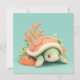 This heart-melting design features an incredibly adorable sea turtle with a sweet, minimalist smiling face and soft pink rosy cheeks. Rendered in a high-quality 3D clay style, the turtle has a smooth, matte mint green body with delicate darker green spots on its flippers. The character is nestled into a vibrant underwater garden, surrounded by hand-sculpted orange coral branches and clusters of soft green sea anemones. Set against a clean, solid light teal background, the overall "kawaii" aesthetic is modern, bright, and full of gentle charm, making it an irresistible choice for any fan of marine life and whimsical character art. This cheerful turtle postcard is a wonderful choice for sending a "shellebration" birthday wish or a playful summer greeting to a friend who loves the ocean. You might choose to use this cute animal card for an under-the-sea themed baby shower invitation or to celebrate a child's pool party with your family members. It also makes a precious decorative piece for a nursery wall or a bright addition to a beach house guest book as a small token of happiness. This versatile design is also an excellent choice for aquarium event announcements, marine biology club invites, or as a heartwarming way to share a short message of joy for any situation or event.