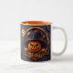 3D Halloween Scene med Pumpkin, Skull, Witch, Boo Två-Tonad Mugg