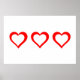 3D-hjärtan - Poster väggkonst - Tre 3d-röda hjärtan på vit bakgrund
